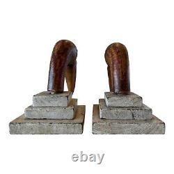 Antique Folk Art Wood Carved Painted Toucan Bird Bookends with Glass Eyes